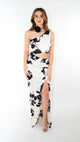 Vestido de satín en color blanco, con flores negras